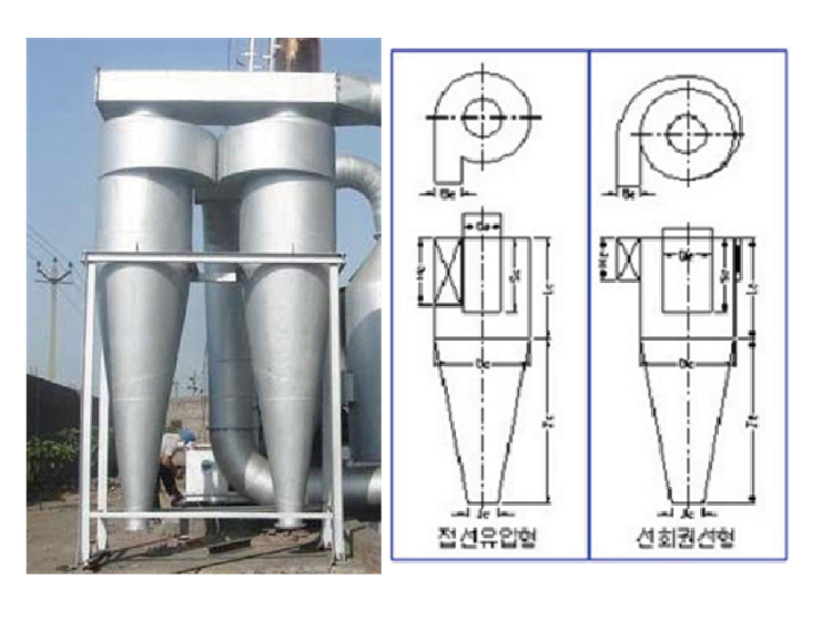 분진 입자 크기, 함진농도, 유입속도, Fan 선저에 따라 성능이 크게 좌우