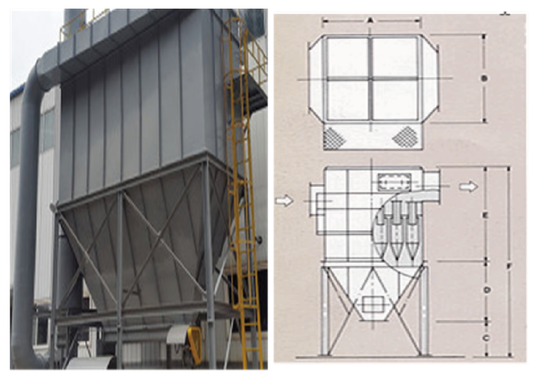 CYCLONE을 병열로 설치하여 압력 손실의 변화가 거의 없으며, 원통 주변의 안내날개로서함진 GAS는 축방향으로 선회 운동을 하므로 연소 가스 처리에 성능이 좋으며미크론 단위까지 포집할 수 있고 MAX 95%까지 집진 효율을 얻을 수 있습니다.